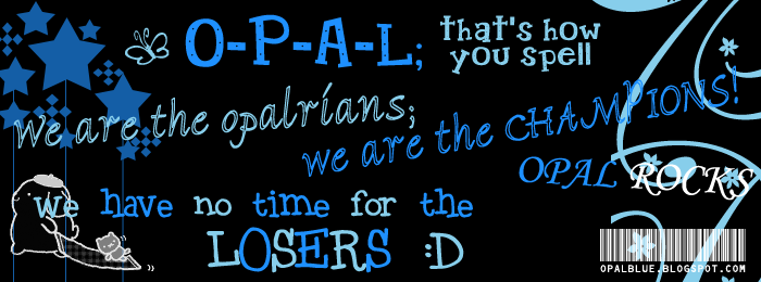 Hey guys , sorry for months of death blog. Super duper lazy to blog nia. Can I offically close this blog or let it rot without permission. Each of the Opal leaders is busy lah. Haiyayaya. But I think I should announce that I won't be blogging till further notice. Just hope that eu guys will take care and have fun this year.